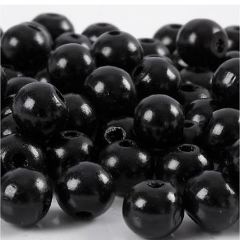 Maalatut, pyöreät puuhelmet.