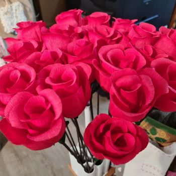 Venyvä ja kestävä paksuhko kreppipaperi esimerkiksi paperikukkien valmistukseen.