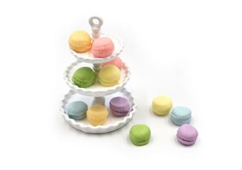 Koristetarjotin koristeluun ja minimaailman rakentamiseen. Pakkaus sisältää yhden metallisen koristetarjottimen ja muovisia macaroneja.